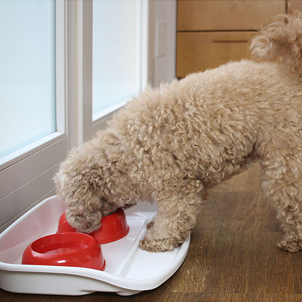 Grande ordine e pulizia con il vassoio Lindo completo di ciotole in plastica per cani e gatti!