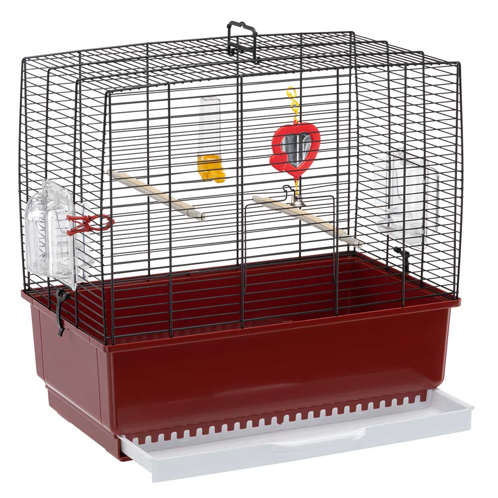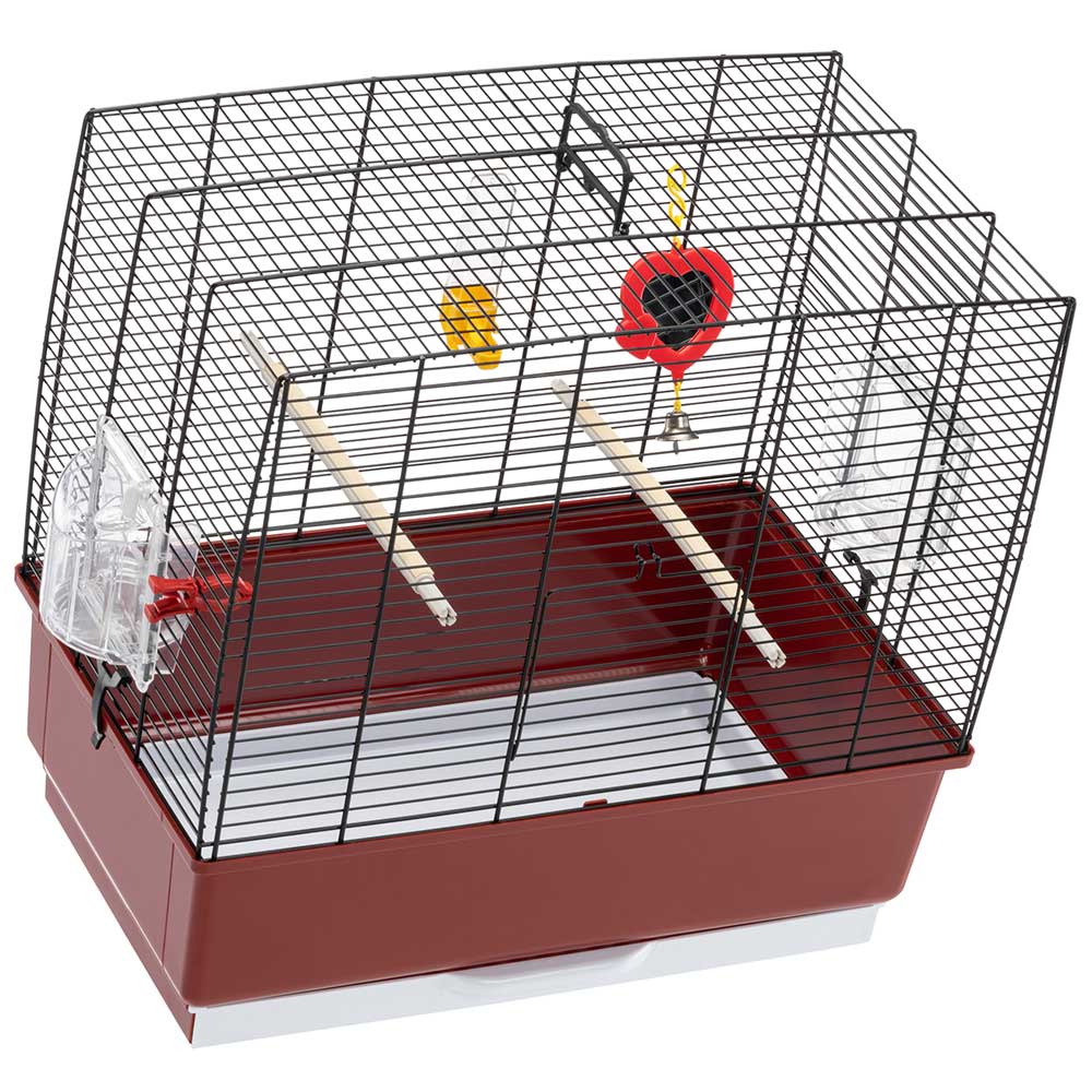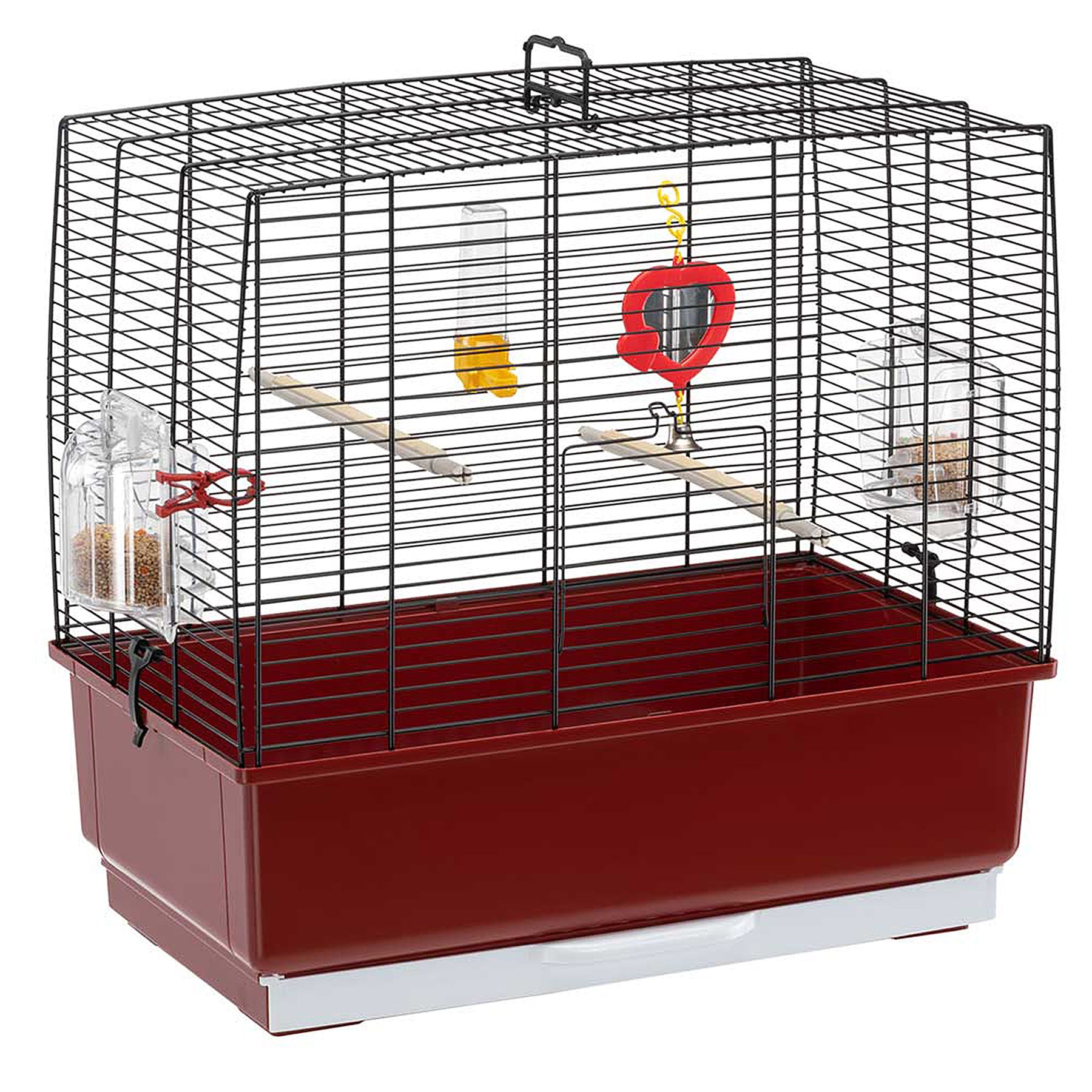 Completa di accessori quali posatoi in plastica ricoperti in gomma antiscivolo, beverino, pinze per il cibo e specchio-gioco. Le speciali mangiatoie girevoli Brava 2, inoltre, realizzate in plastica trasparente, sono davvero pratiche: progettate in modo da poter essere girate di 180°, possono essere riempite facilmente dall’esterno, senza lasciare alcuna apertura da cui l'uccellino possa scappare. Gli utili bordi di cui sono dotate impediscono al cibo di cadere al di fuori della gabbia.