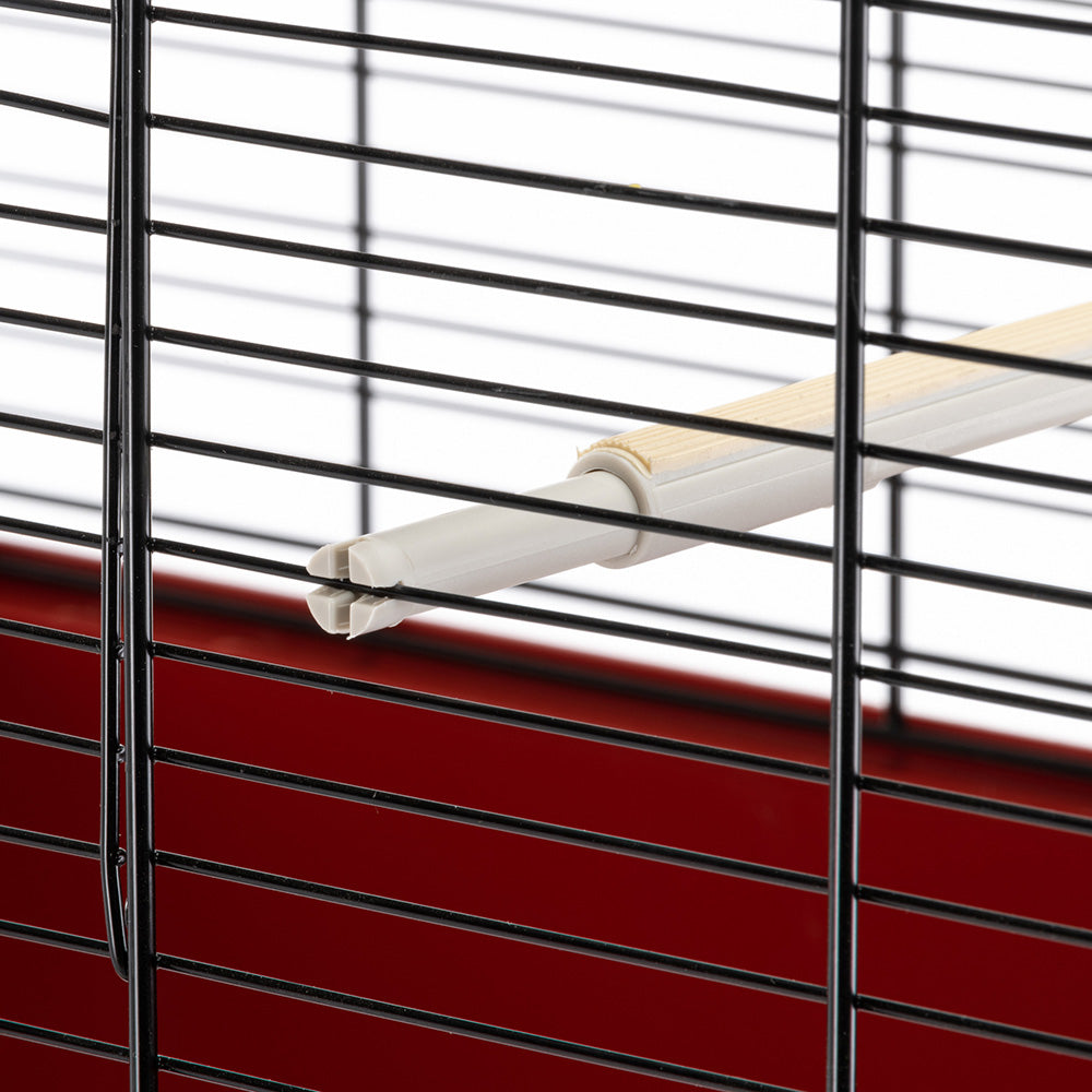 Rekord 3 è una gabbia a base rettangolare di medie dimensioni, ideale per canarini, esotici o altri piccoli uccelli. Realizzata in rete di metallo verniciato, ha un fondo in plastica con cassetto raccogli sporco estraibile per agevolare le operazioni di pulizia. Il fondo è inoltre particolarmente capiente per impedire allo sporco di fuoriuscire.