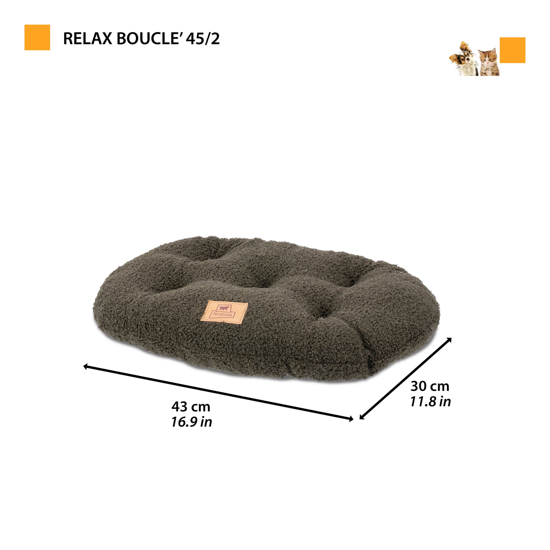 Il cuscino per cani e gatti Relax Bouclé unisce stile e comfort in un accessorio perfetto per il riposo del vostro animale. Realizzato in soffice tessuto bouclé sintetico, extra morbido e caldo, presenta una forma ovale con imbottitura interna che assicura sostegno e benessere totale. Accogliente ed elegante, è ideale per offrire al vostro amico a quattro zampe uno spazio personale che sia al tempo stesso funzionale e raffinato, perfetto per la stagione invernale e per gli animali più freddolosi.
